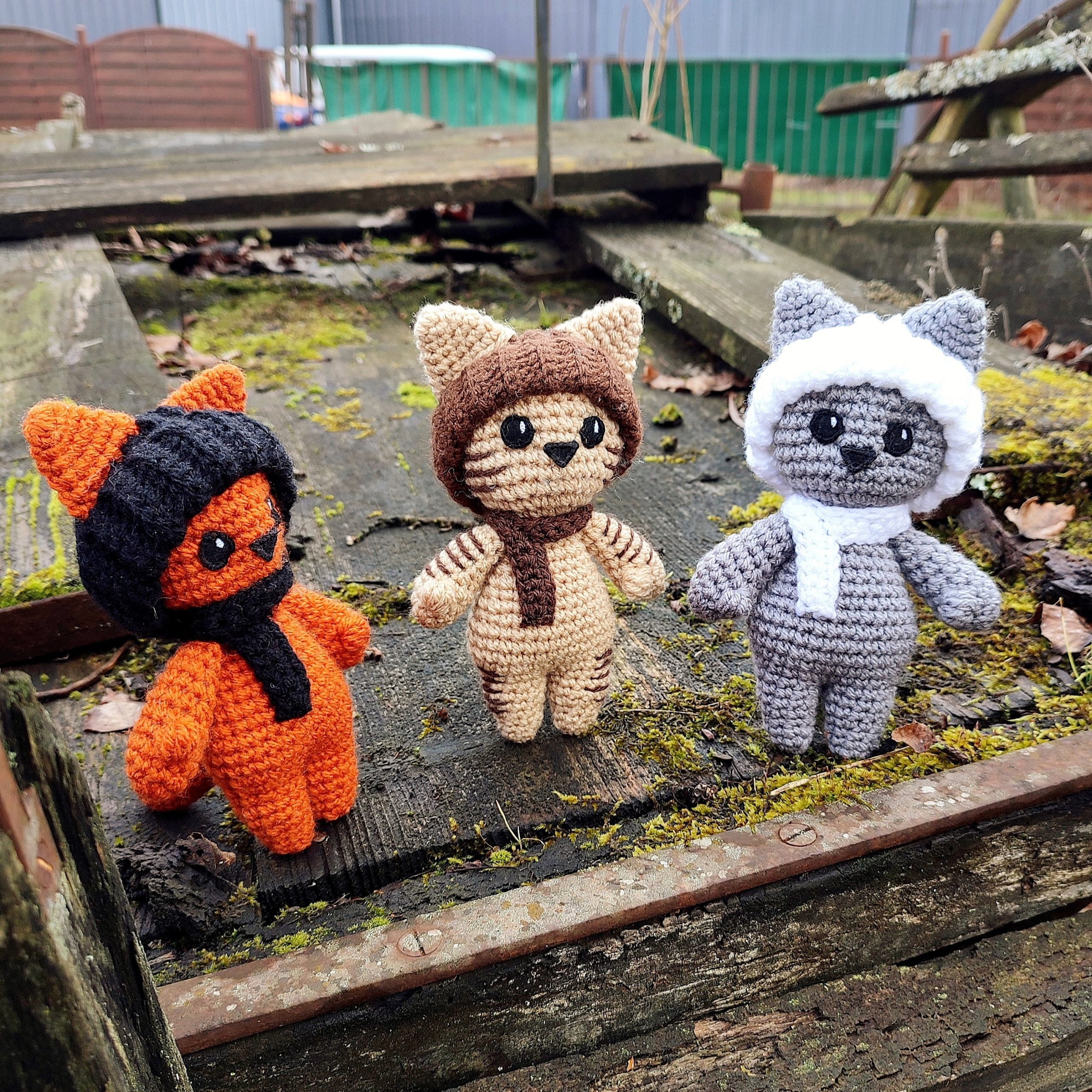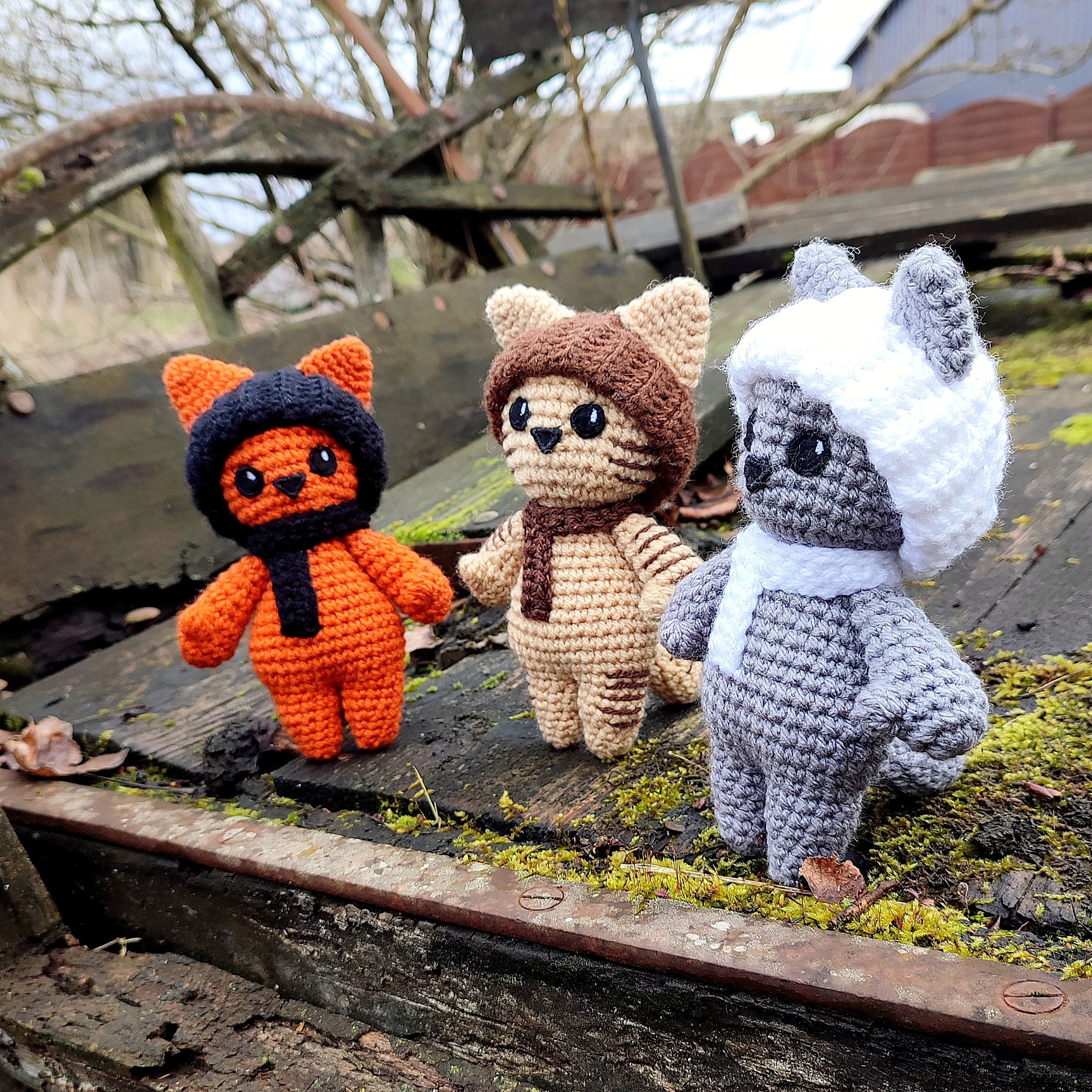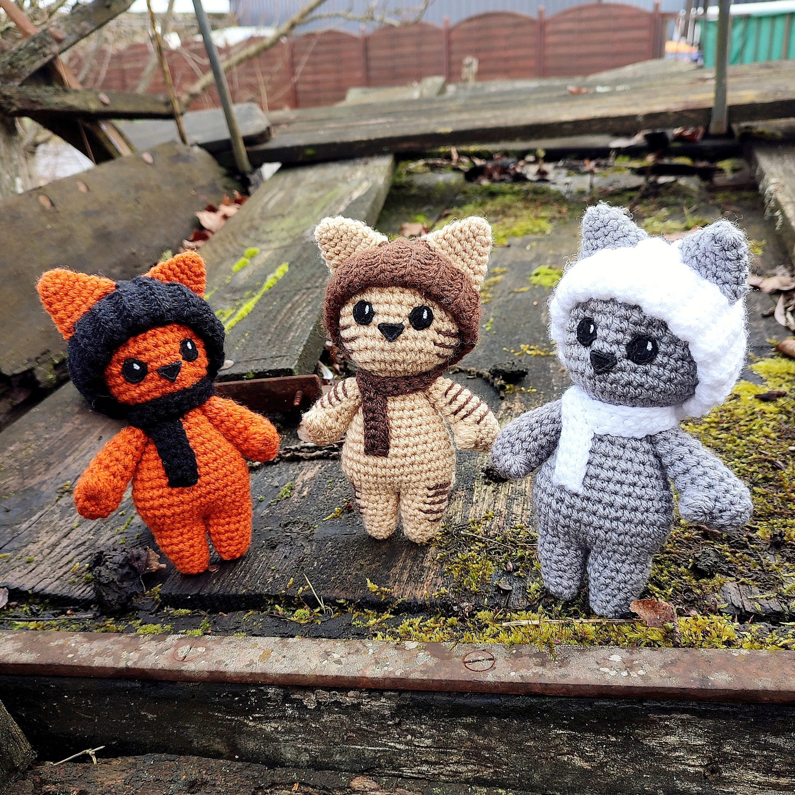 Peluches de chats avec bonnets et écharpes