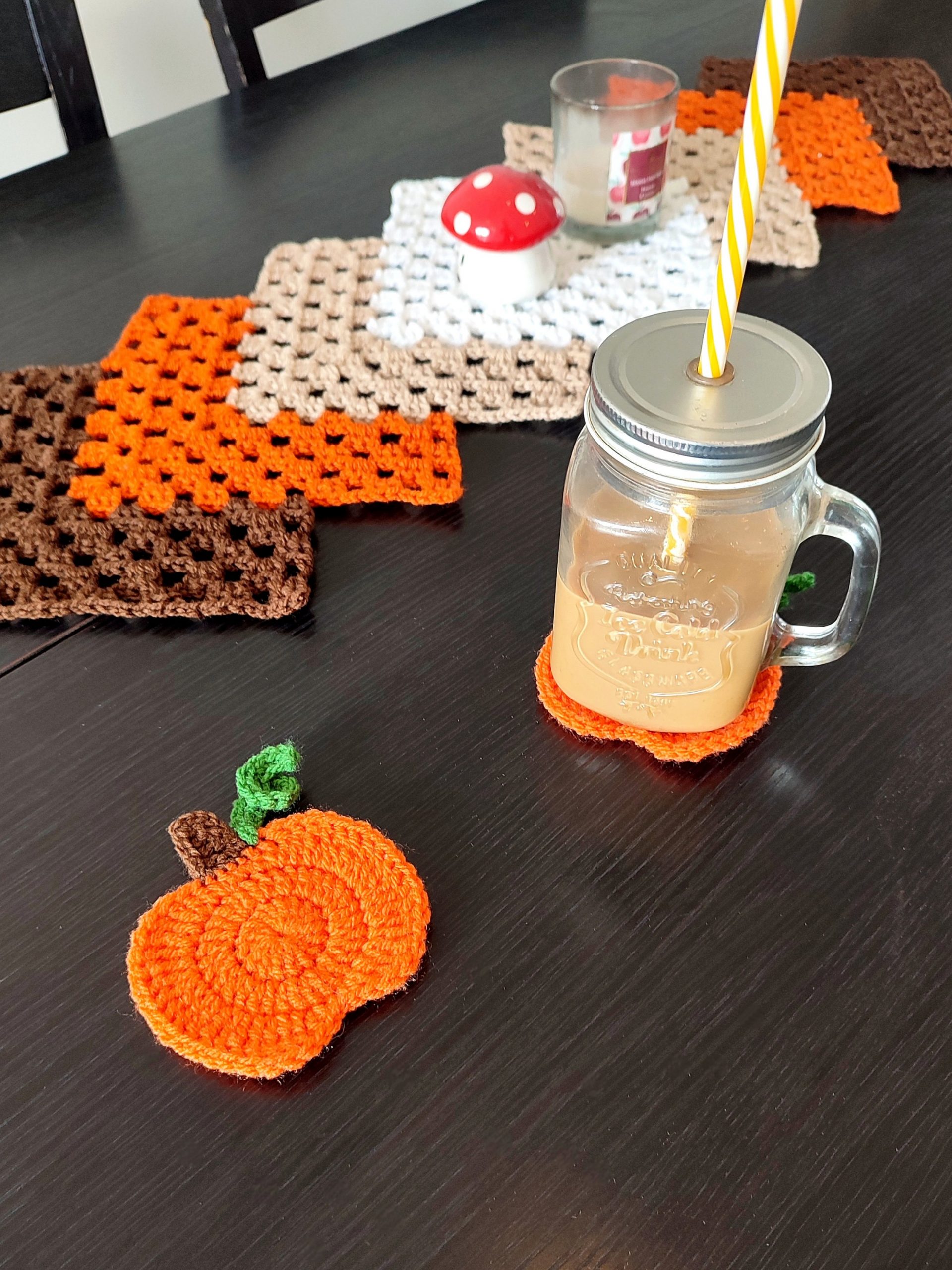Dessous de verres réalisés à la main au crochet en forme de citrouilles